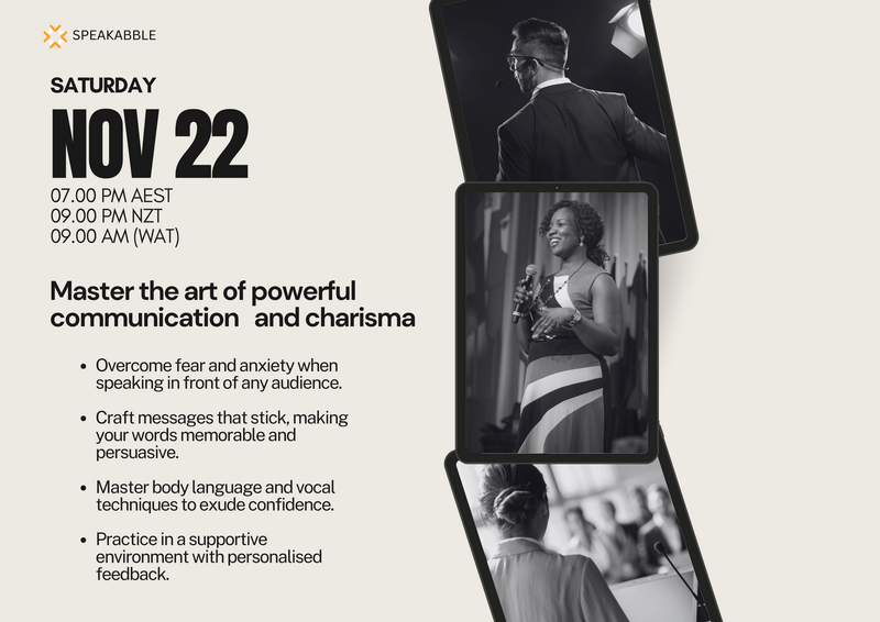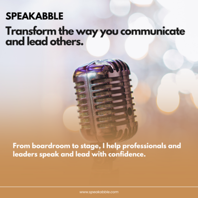 Your voice is your leadership tool. Stop letting opportunities slip away. Speak better, lead better, and get results. From boardroom to stage, I help professionals and leaders speak and lead with confidence. JOIN THE SPEAKABBLE COMMUNITY to level up today!